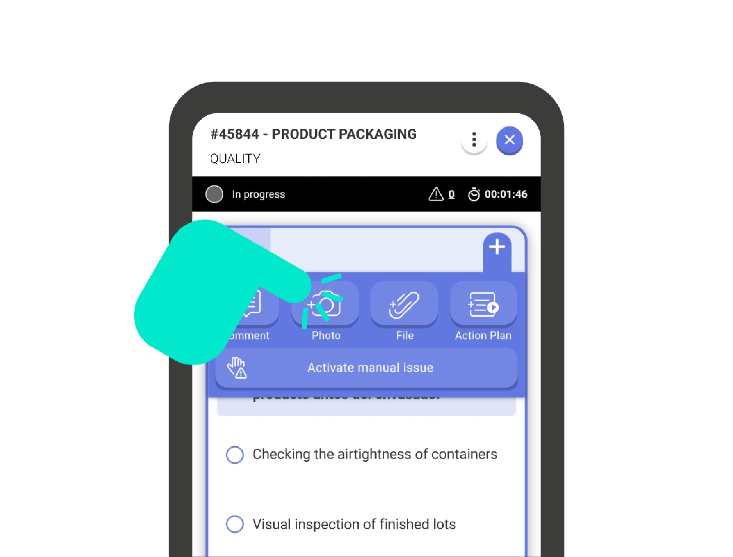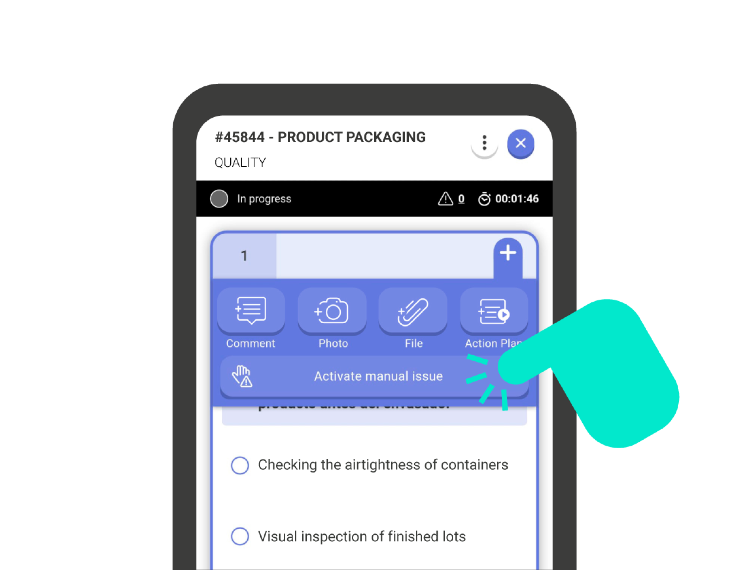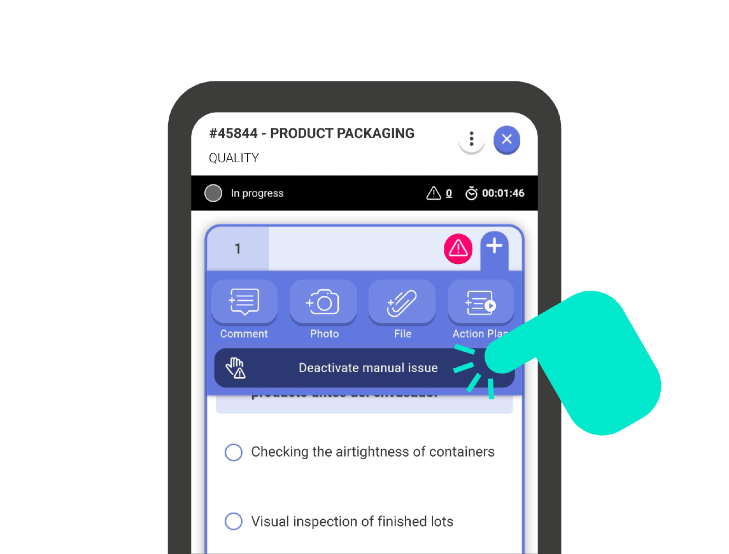 To activate a manual issue, click the ‘+’ button in the upper right corner of the question card. Next, check the menu bar ‘Activate Manual Issue’. To deactivate it, do the same but click on the ‘Deactivate manual issue’ bar.