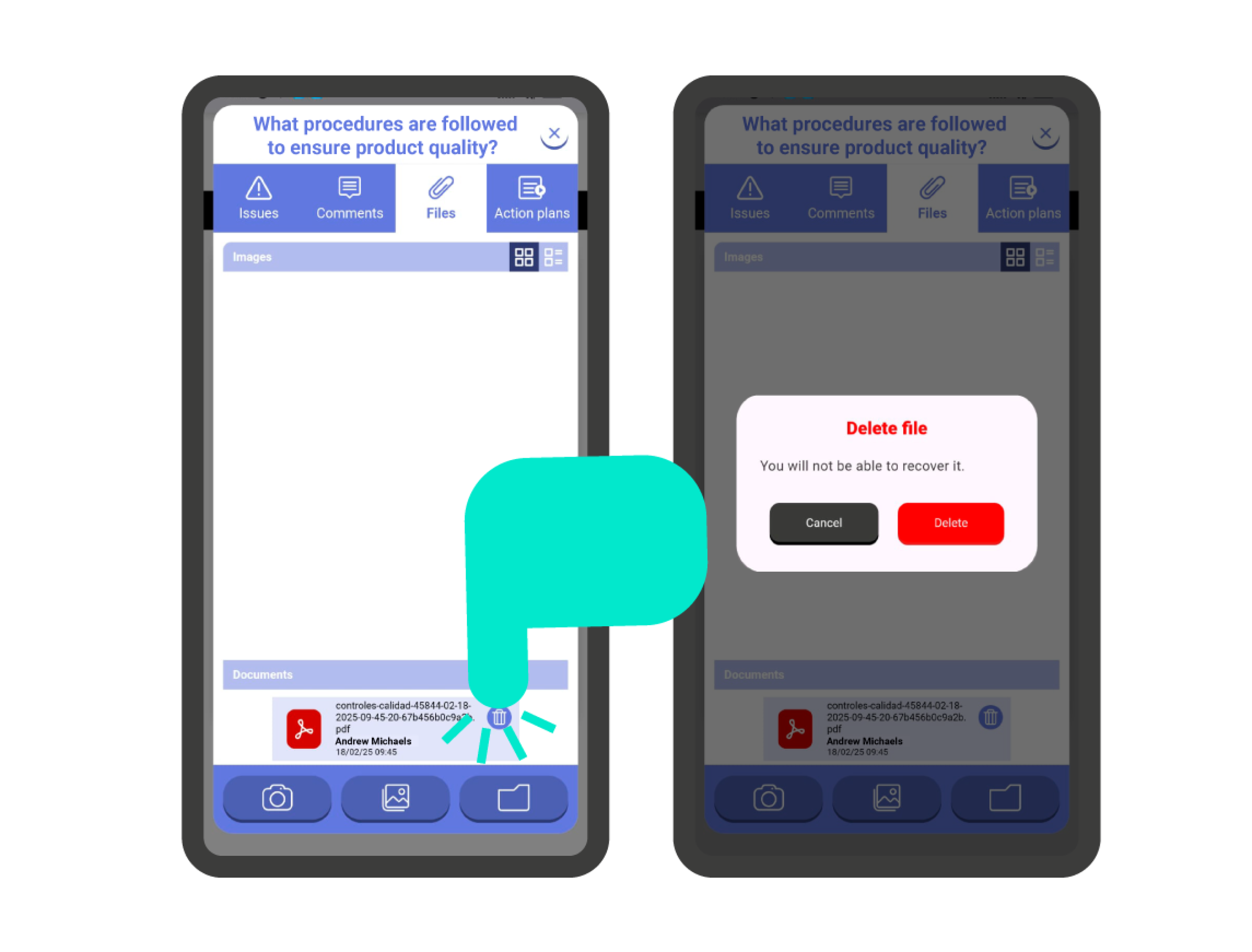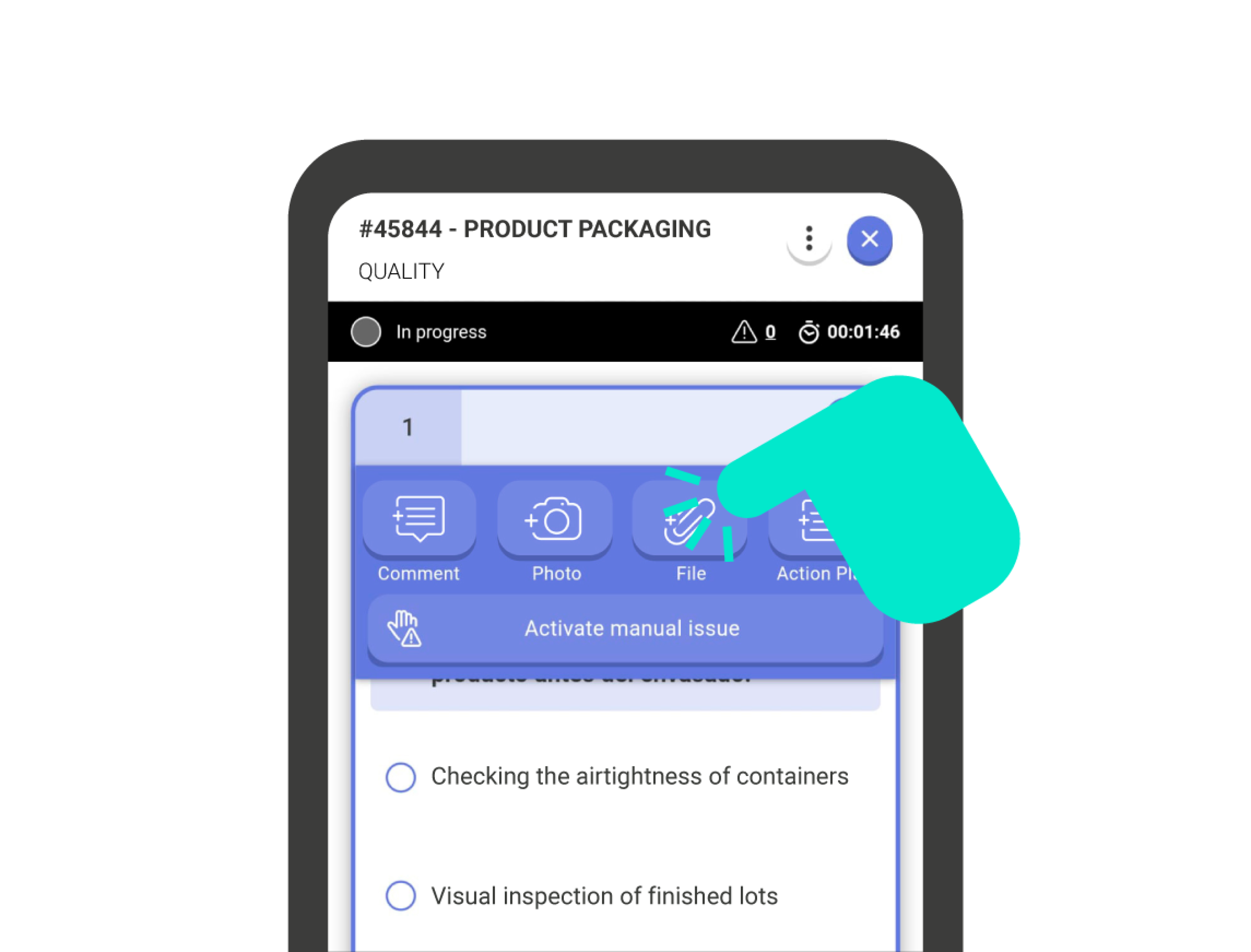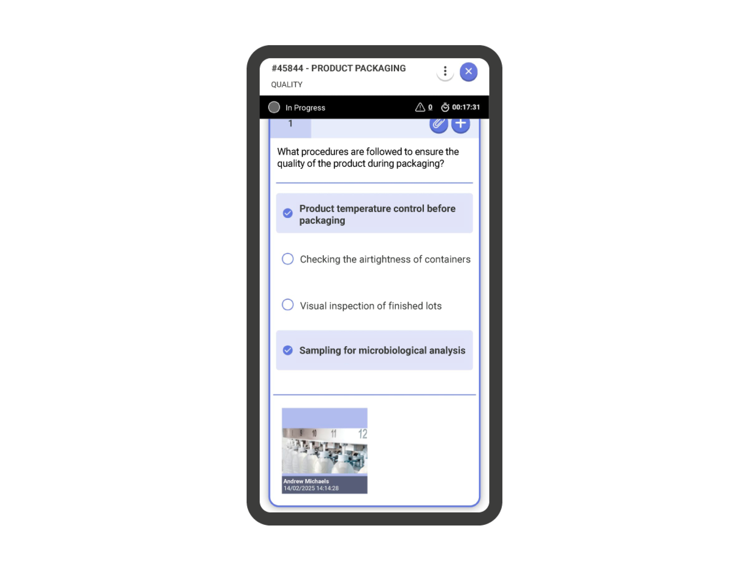 Important!: When there is any comment, image, or file attached to the question, buttons will appear at the top of the card. By tapping any of them, you will be able to view the attachments to the question.