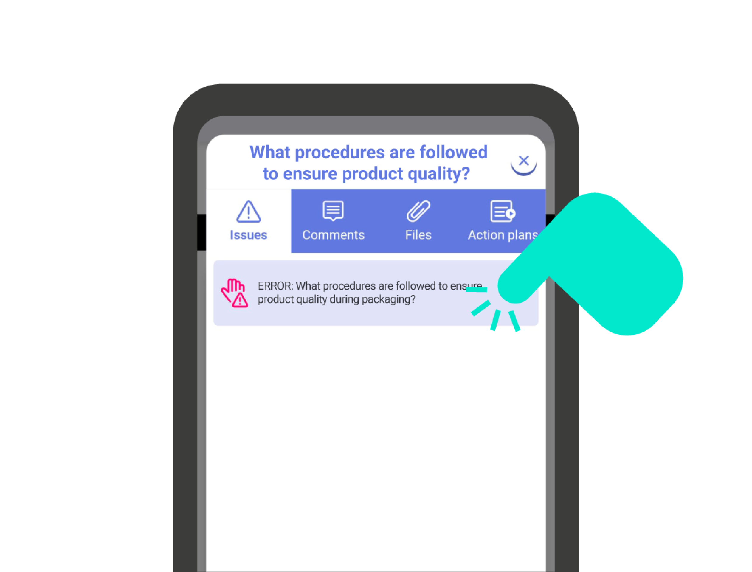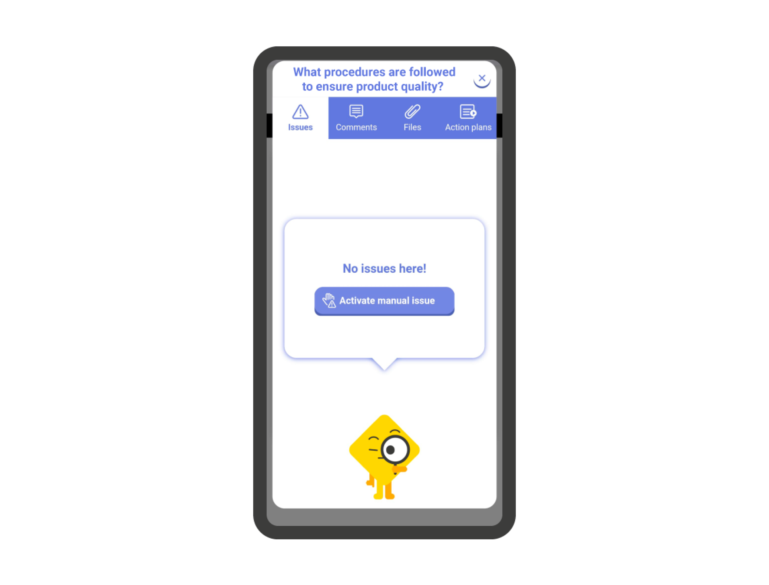 Manual issues allow the user to indicate that, regardless of the question’s outcome, there is something, usually negative, to highlight regarding it.