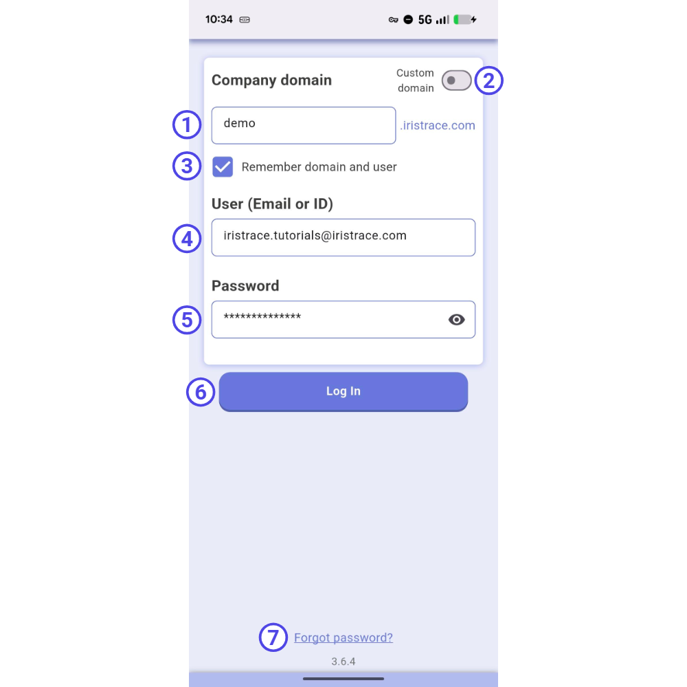 - Standard domain: By default, the Custom domain toggle (2) is off. Enter your company’s subdomain (e.g. “demo”) and the app will automatically complete it with “.iristrace.com”.