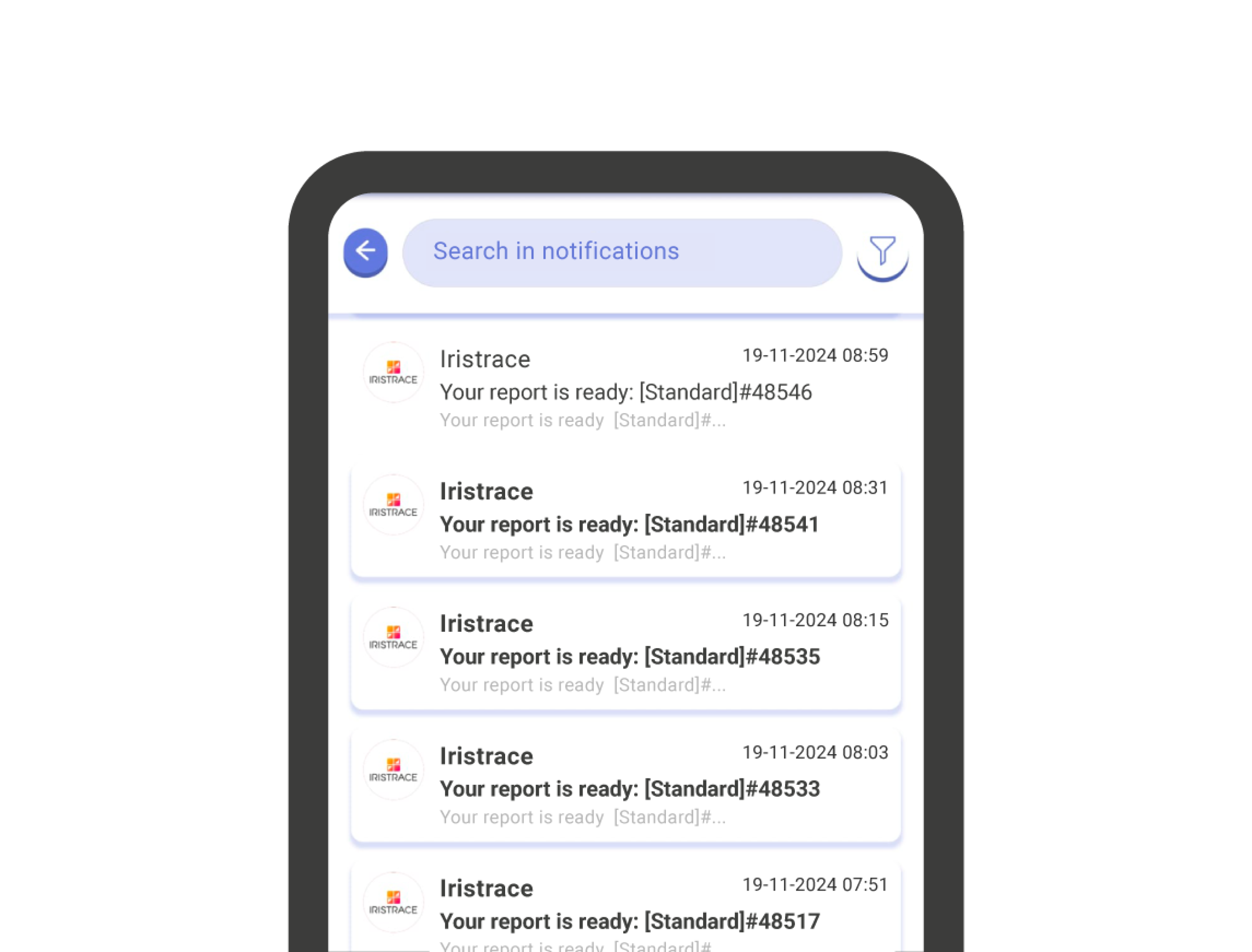 Notifications in IRISTRACE are used to communicate aspects such as report downloads, checklist assignments, change communications, etc.