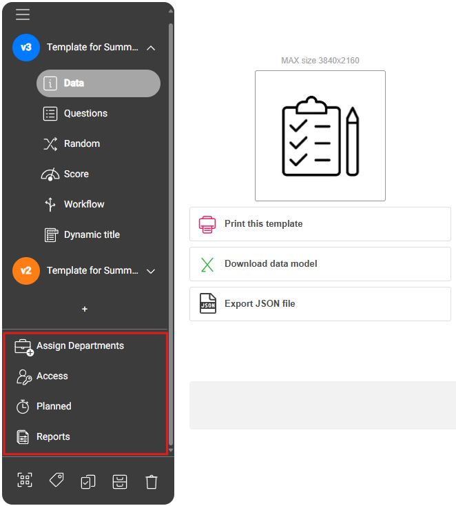 - Template Editor Side Menu: The template editor now features a reorganized side menu. It is designed to be cleaner and more efficient by grouping related settings and introducing an expandable menu to support multiple template versions.
