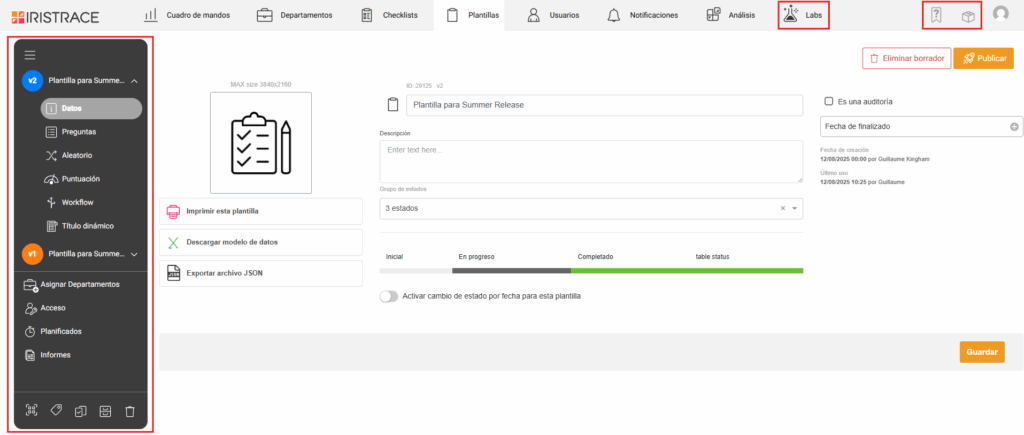 Esta guía está diseñada para que los usuarios actuales entiendan los cambios principales en la interfaz de Iristrace, con un enfoque específico en el nuevo sistema de versionado de plantillas. Le mostraremos cómo navegar por el nuevo diseño y gestionar sus plantillas de forma eficiente.