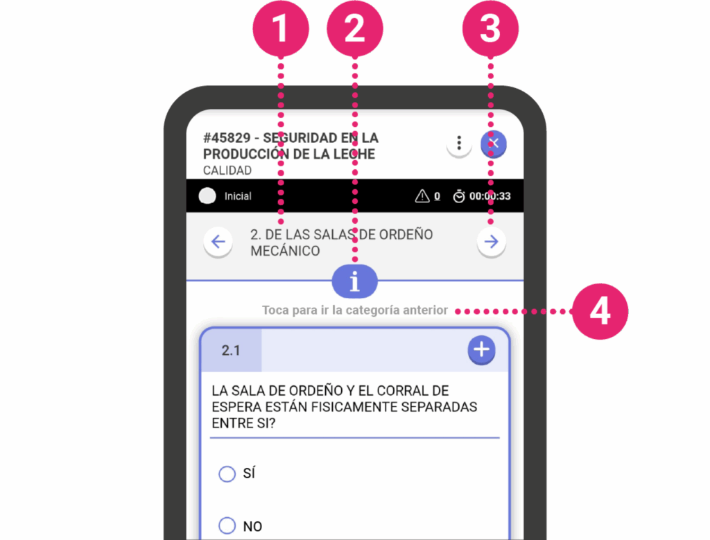 ¡Importante!: Las categorías funcionan como bloques que se cargan independientemente unas de otras. Al llegar al final de una categoría podrás pasar a la siguiente pulsando en “Toca para ir a la siguiente categoría”. La misma lógica se aplica para volver a la categoría anterior (4).