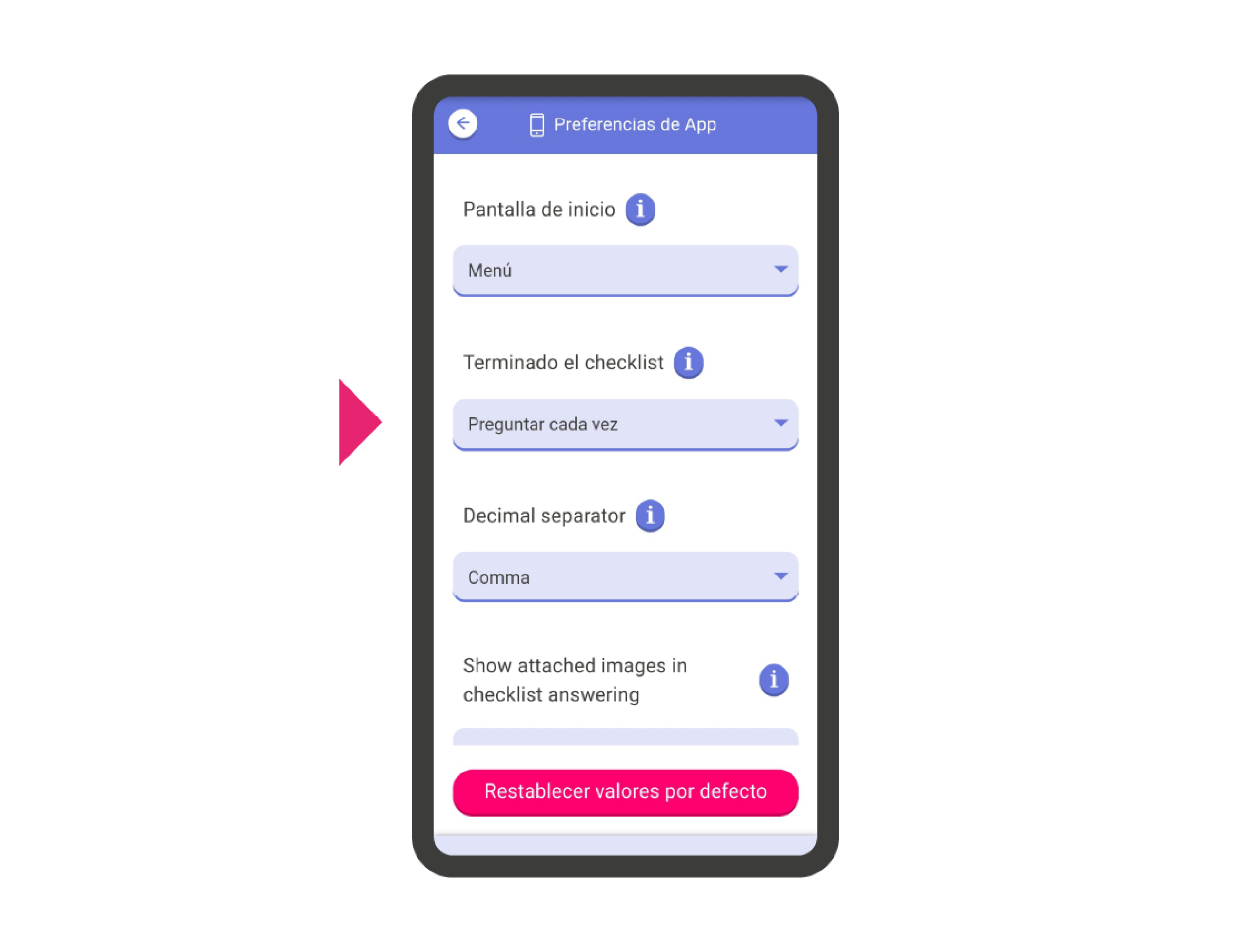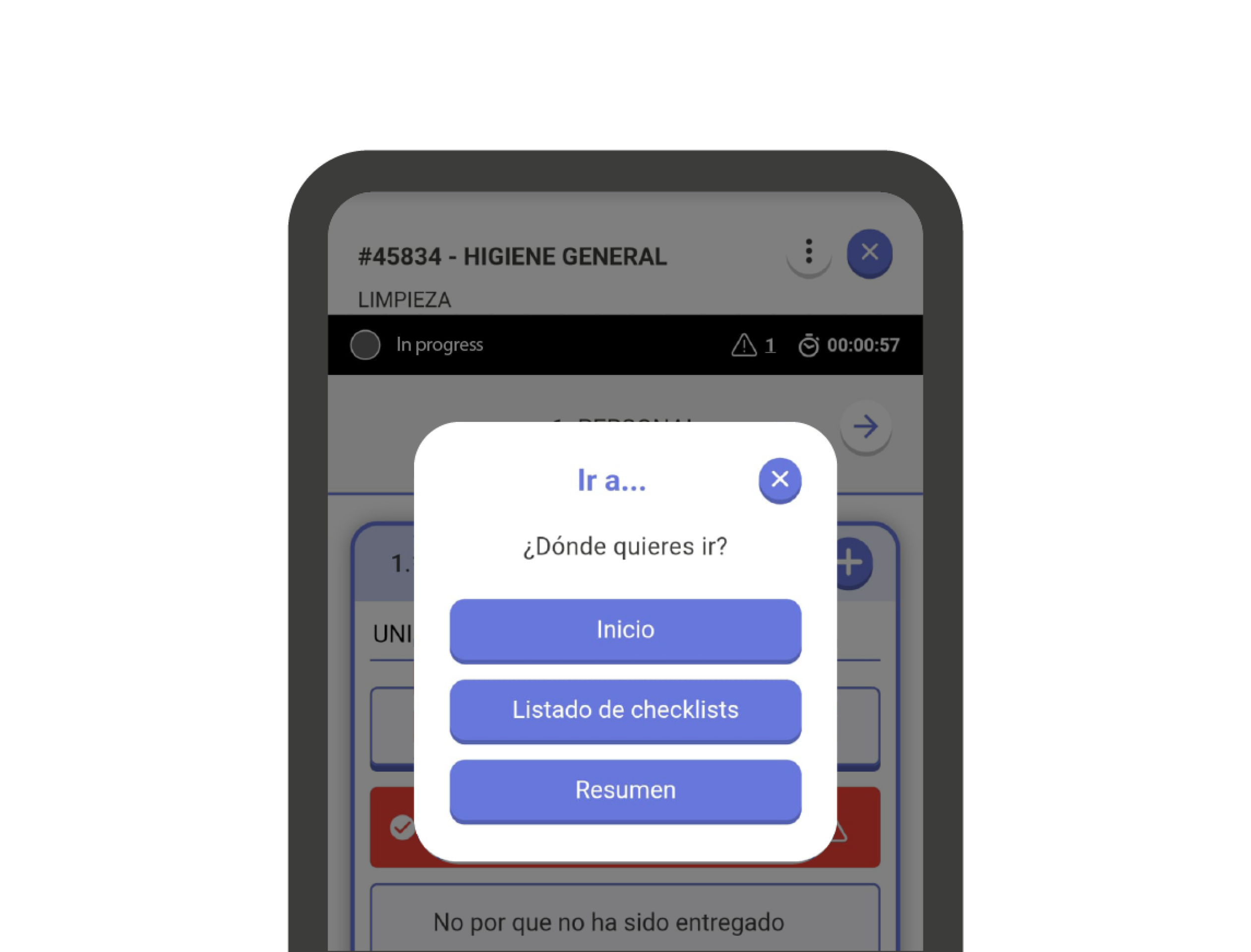¡Importante!: Esto se puede omitir eligiendo un valor predeterminado en la configuración de las preferencias de la aplicación desde el menú INICIO (Ajustes > Preferencias de la App > Terminando la checklist).