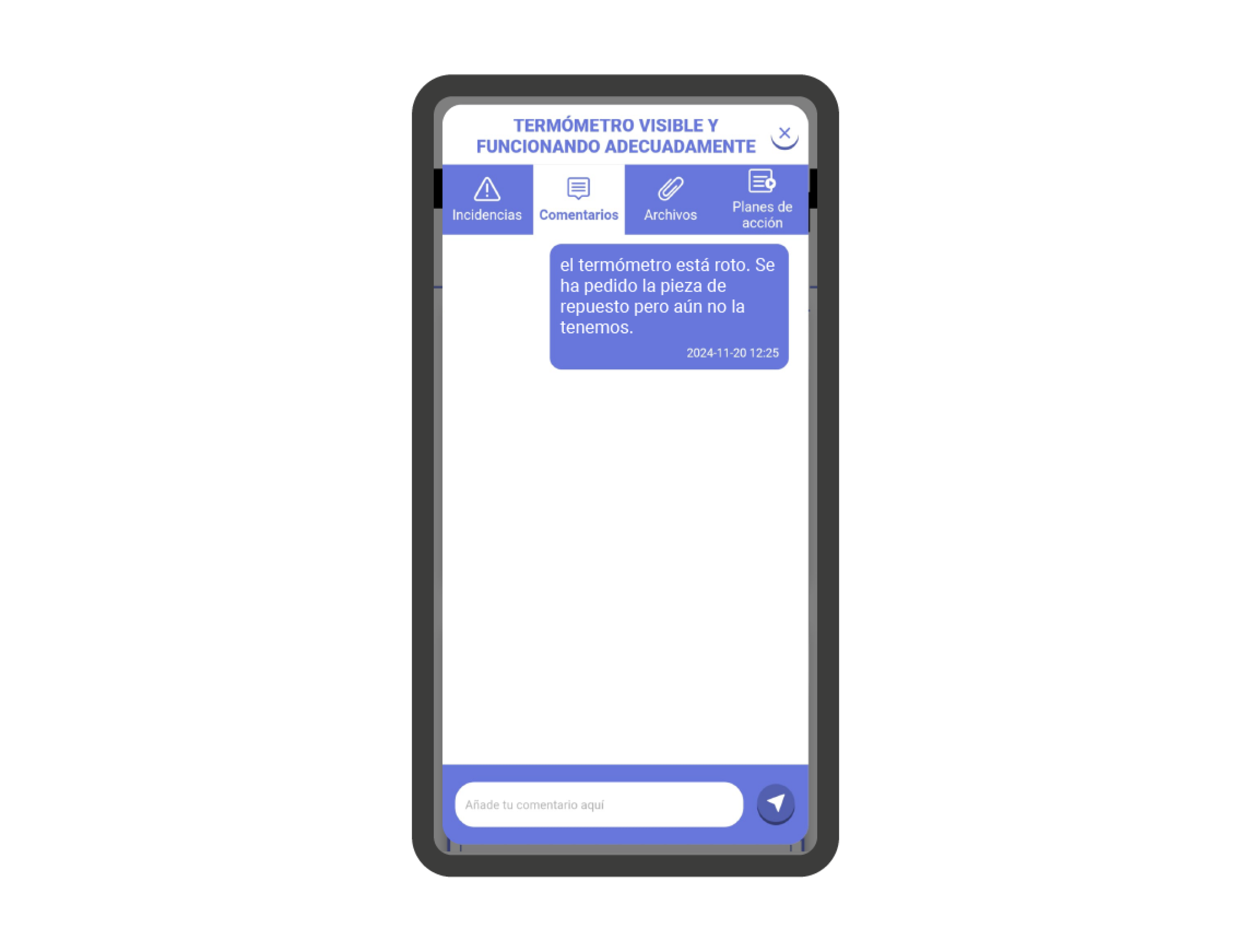 • Comentarios: Puedes introducir un comentario a tu respuesta en un pequeño chat exclusivo de la pregunta, donde cualquier usuario asignado puede comentar.
