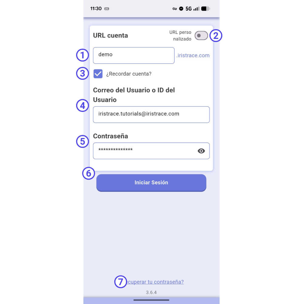 Una vez rellenados todos los campos, toque Iniciar Sesión para acceder a la aplicación.