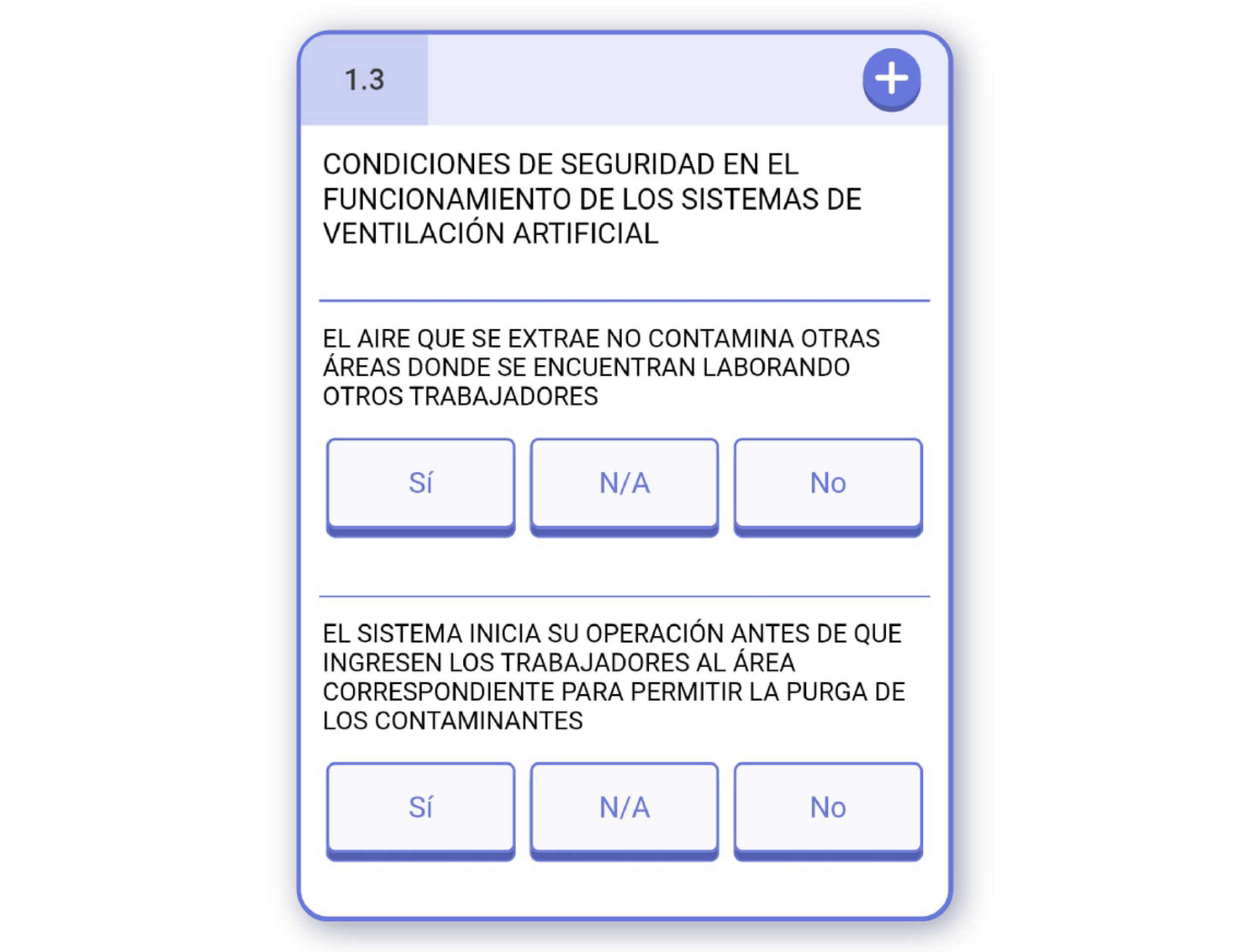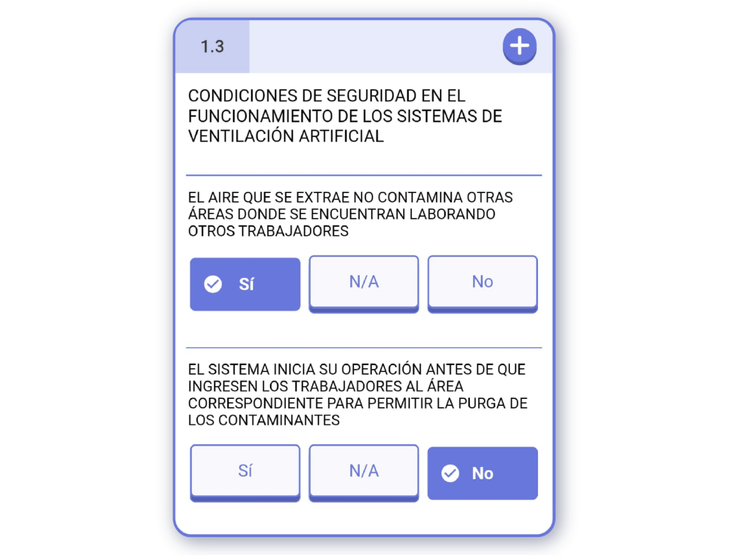 En IRISTRACE, este tipo de pregunta muestra una o más sub-preguntas independientes entre sí. Estas preguntas solamente pueden ser respondidas con un ‘Sí / No / N/A’.