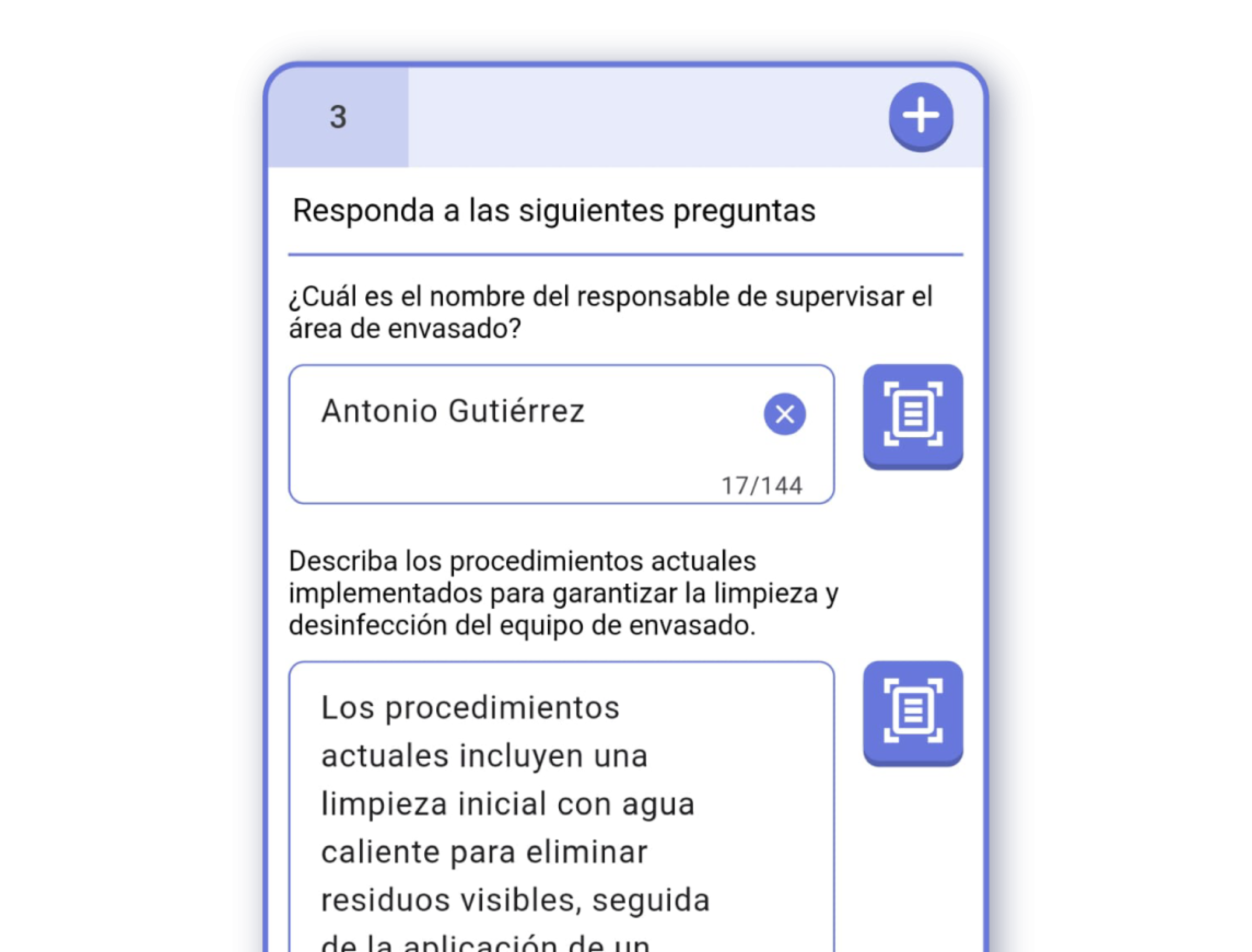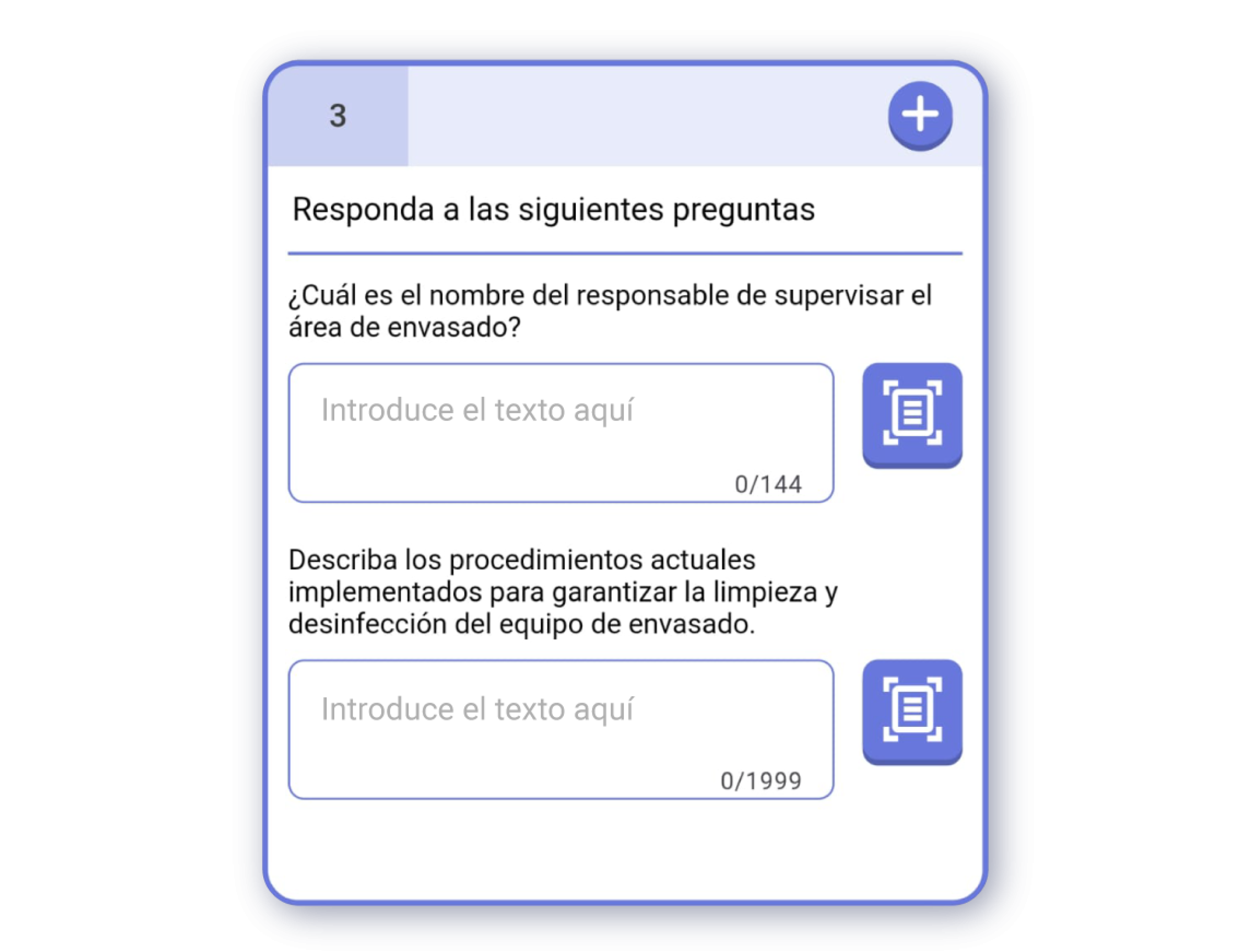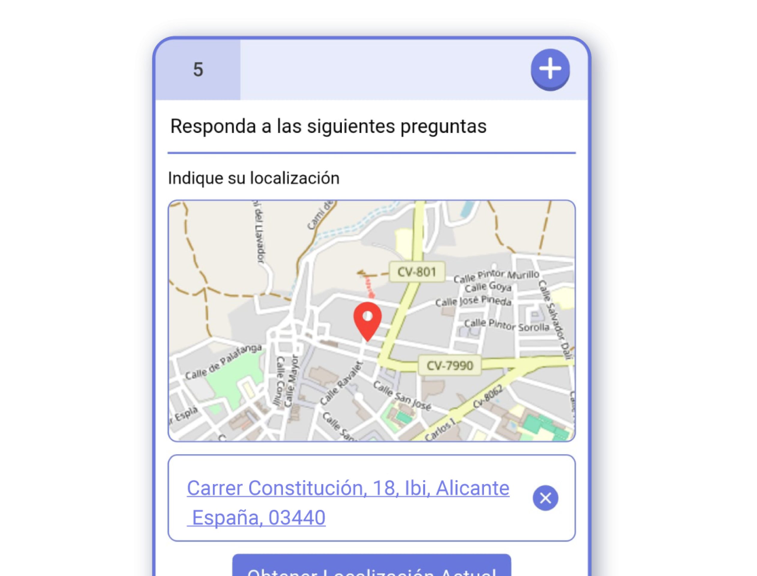 ¡Importante! Puedes escanear un código de barras con un icono al lado de la caja de texto. Al escanear el código, se introducirá el número del código de barras como respuesta.Fecha: Respuesta de fecha seleccionable desde un calendario.Hora: Respuesta de hora y minutos seleccionables desde un reloj.Fecha y Hora: Respuesta que combina los dos anteriores modos en una sola respuesta.Ubicación: Respuesta que registra la localización del usuario. Puedes utilizar la geolocalización del dispositivo para registrar la respuesta.Número: Respuesta que registra un número.URL: Respuesta que registra una dirección web.